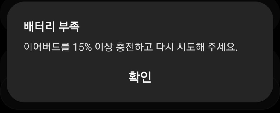 갤럭시 버즈 2 프로 유닛 충전이 15프로 미만일