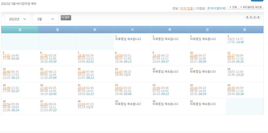 해당 지역에 물때를 알 수 있습니다.