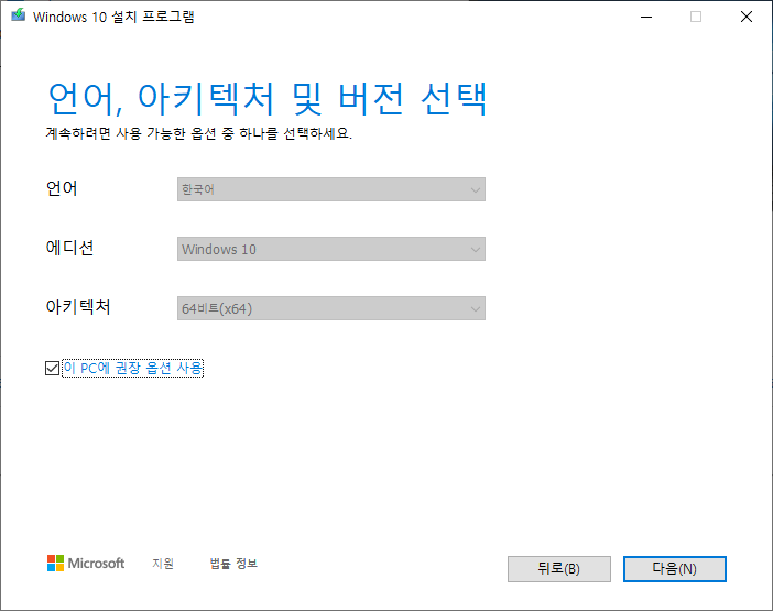 윈도우 10 설치 USB 만들기