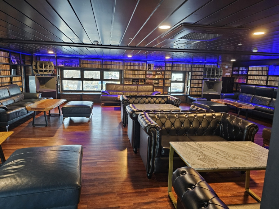 2층은 한쪽은 이렇게 LP판, 노래듣는 곳 같았어요. 아무도 안계시길래사진 한장 스피커 엄청 좋아보여요.